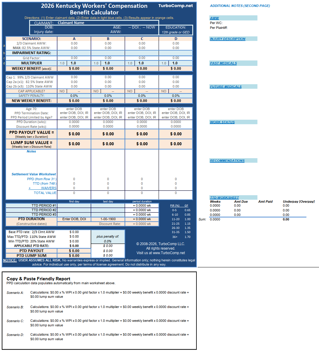 2026 Kentucky Workers' Compensation Benefit Calculator